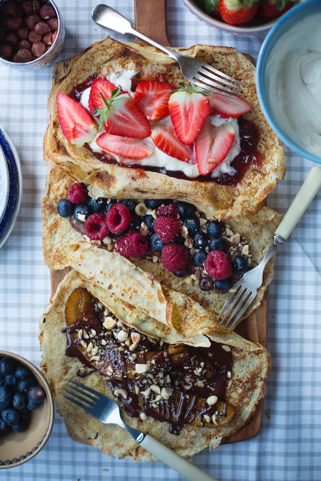 Pancake Tuesday is without a doubt the easiest morning of the year to get the boys to finish their breakfast! The excitement of making their own batter and choosing all their own toppings is definitely part of the fun and the cheers from them watching us flip the pancakes up in the air makes this slightly chaotic morning all worth it. I’ve added some of our favourite pancake recipes here, from the basic crepe recipe, a gluten free version to some more exciting flavours. Enjoy!